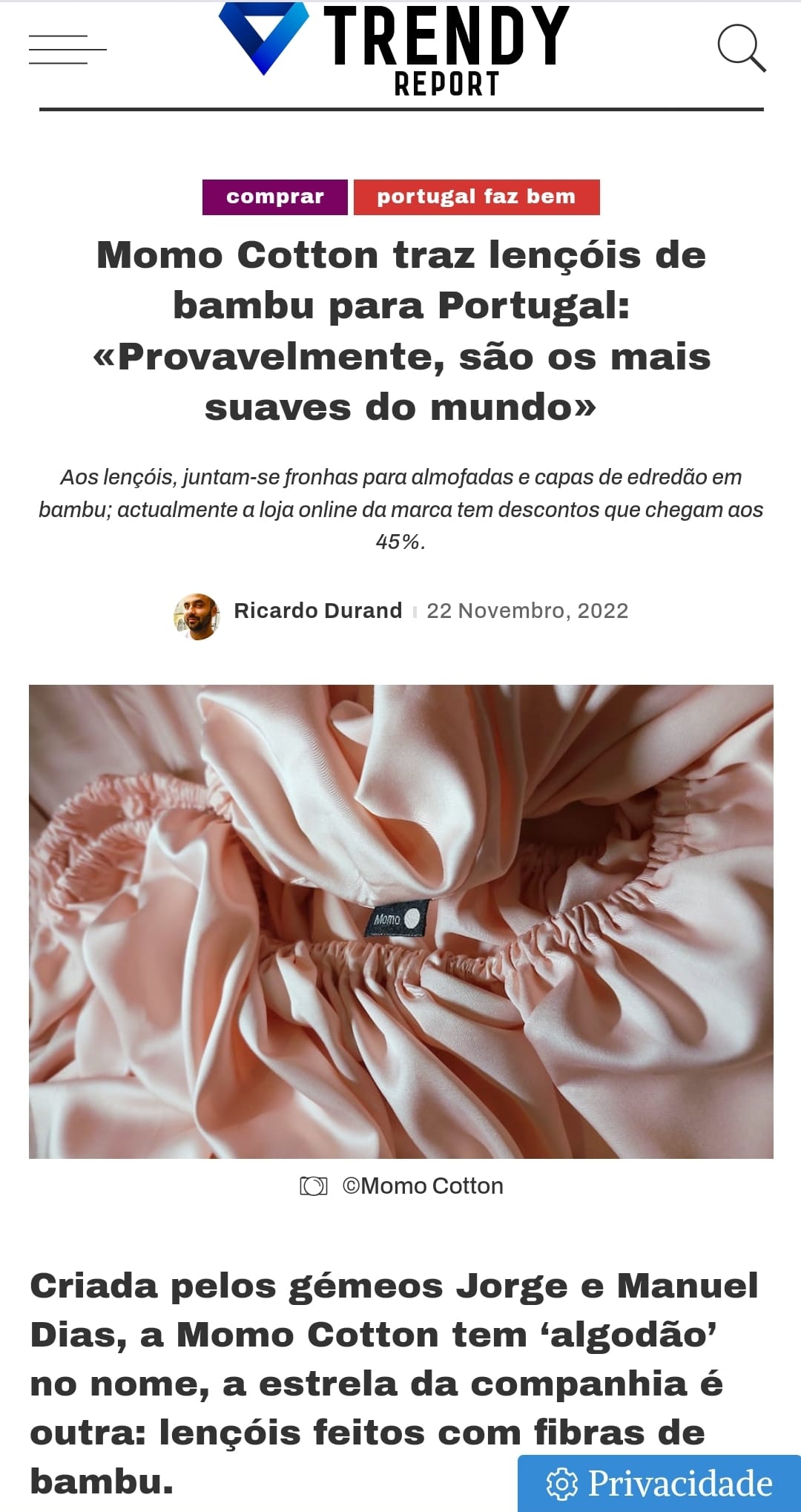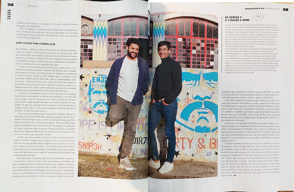 Momo Cotton : la première marque portugaise de draps en bambou ultra-doux Après un voyage à Hong Kong, deux frères jumeaux se sont lancés dans une entreprise de linge de lit innovante sur le marché national.