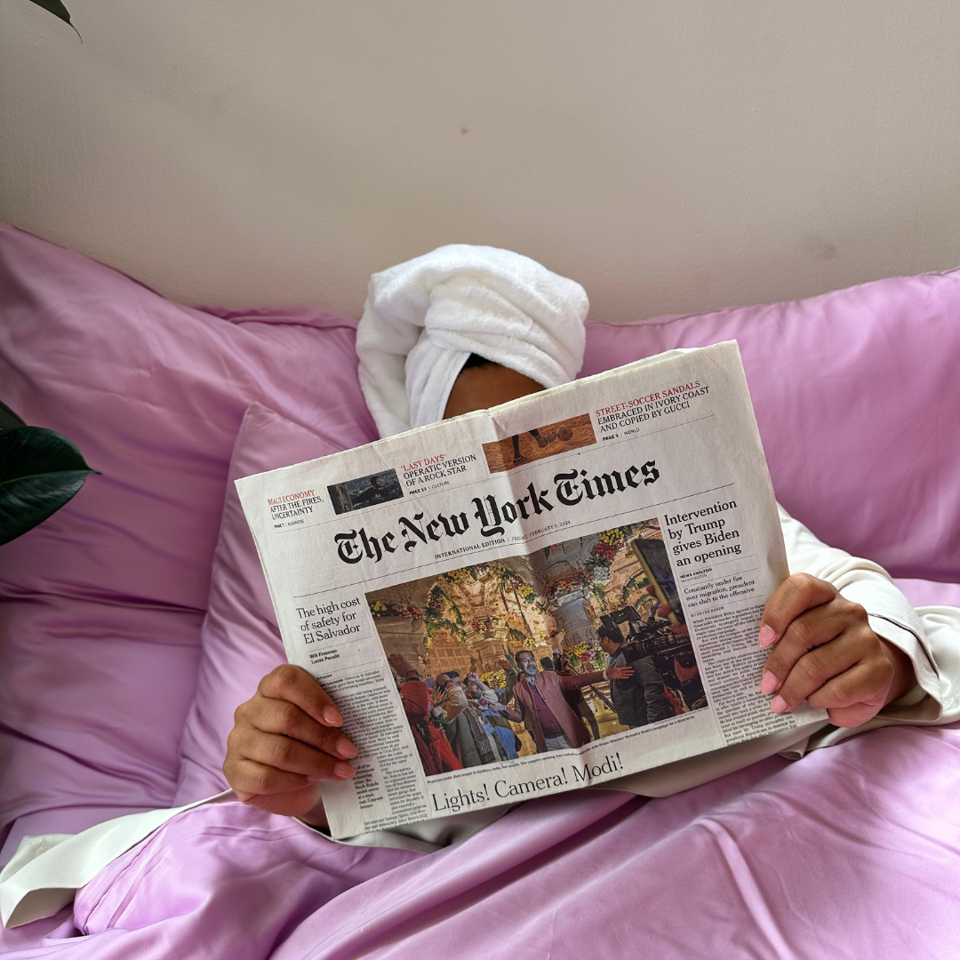 Os lençóis Momo são de 300 fios de contagem, o equivalente a 1200 no algodão.